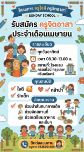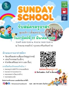 เด็ก เยาวชน สตรี ค้นหา “ทำมือด้วยรัก ส่งต่อด้วยหัวใจ”29 มี.ค. 2026SUNDAY SCHOOL22 มี.ค. 2026เยาวชนสยามอารยะ — บอร์ดเกมการเรียนรู้ 🎲🎮🧩11 มี.ค. 2026โครงการ ครูใจดี ครูจิตอาสา01 มี.ค. 2026Happy Learning Sunday โครงการครูจิตอาสา วันอาทิตย์05 มี.ค. 2026โครงการ ครูใจดี ครูจิตอาสา01 เม.ย. 2026จิตอาสาพัฒนาชุมชน28 ก.พ. 2026อาสากำแพงศิลป์ ครั้งที่ 314 มี.ค. 2026คุณครูจิตอาสา Sunday school จ.มุกดาหาร03 มี.ค. 2026เปิดรับอาสาสมัครโครงการเยาวชนนาอุดม ลดอุบัติเหตุ22 มี.ค. 2026Activity Hope รับสมัคร STAFF จิตอาสา01 ก.พ. 2026📣รับสมัคมอาสาสมัครครู และพี่เลี้ยง “ดูแลระดับชั้นอนุบาล – ประถมศึกษาชั้นปีที่6”01 มี.ค. 2026รับสมัครครูอาสา จำนวน 10 อัตรา23 ก.พ. 2026โครงการพี่วิ่งน้องเรียน รับสมัครจิตอาสา จำนวน 10 อัตรา23 ก.พ. 2026จิตอาสาด้านการออกแบบ23 ก.พ. 2026Sunday school (เดือนมีนาคม)01 มี.ค. 2026Sunday School01 มิ.ย. 2025