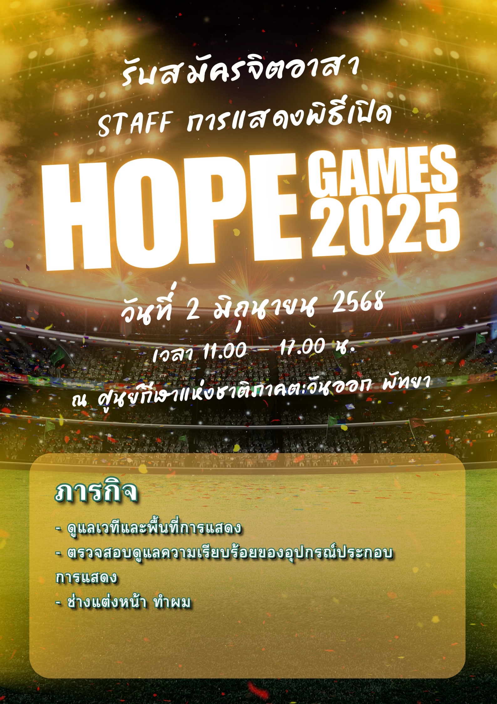 กีฬา Hope Games เป็นกิจกรรมการแข่งขันกีฬาสำหรับเยาวชนและครอบครัว จัดขึ้นภายใต้การดูแลของมูลนิธิ Hope Academy โดยมีเป้าหมายเพื่อส่งเสริมการใช้เวลาว่างอย่างสร้างสรรค์ เสริมสร้างความสัมพันธ์ในครอบครัวและชุมชน ตลอดจนเป็นกลไกในการป้องกันและแก้ไขปัญหายาเสพติดในหมู่เยาวชน ผ่านการปลูกฝังวินัย ความสามัคคี และการมีน้ำใจนักกีฬา
