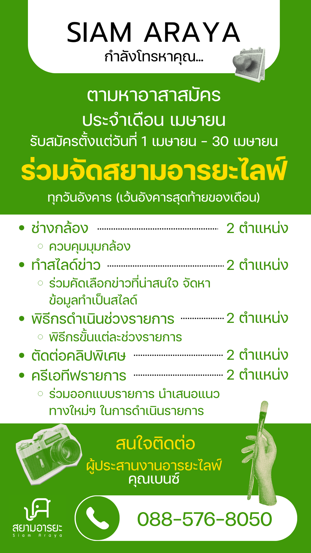 ประเภท: อาสาสมัคร (ต่อเนื่อง) รายละเอียด: ร่วมผลิตรายกา […]