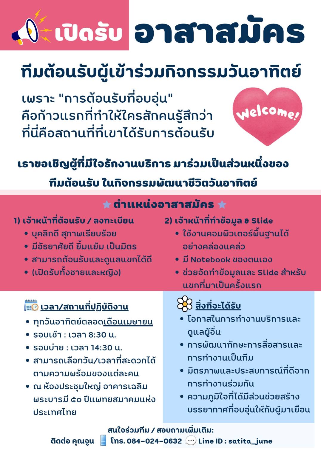 1) เจ้าหน้าที่ต้อนรับ / ลงทะเบียน บุคลิกดี สุภาพเรียบร้ […]