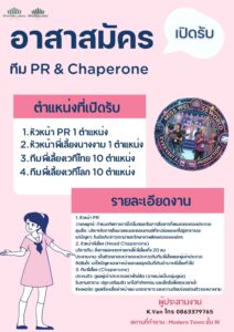 กิจกรรมอื่นๆ ค้นหา เปิดรับสมัคร เจ้าหน้าที่สำรวจงานภาคสนาม (Field Survey Officer)18 มี.ค. 2026รับอาสาสมัคร “ผู้ร่วมตอบแบบสำรวจเพื่อประโยชน์สาธารณะ”18 มี.ค. 2026อาสาสมัครเพื่อสร้างชุมชนที่ยั่งยืน18 มี.ค. 2026Sunday school18 มี.ค. 2026แปลงโฉมศูนย์เรียนรู้เพื่อชุมชน16 มี.ค. 2026รับอาสาสมัคร ร่วมจัดกิจกรรมเพื่อผู้สูงอายุ Senior Gentleman & Lady29 มี.ค. 2026อาสาเก็บขยะคลอง — คลองบางมดสะอาด ♻️🧃🧹15 มี.ค. 2026เยาวชนสยามอารยะ — บอร์ดเกมการเรียนรู้ 🎲🎮🧩11 มี.ค. 2026ช่างอาสา — สร้างอาคารอเนกประสงค์ ศูนย์เรียนรู้ชุมชนอารยวิถี 🦺🔨🔧11 มี.ค. 202650 Plus Vibes (Content & Digital Media Team)08 มี.ค. 2026เปิดรับสมัครอาสาสมัครร่วมทีมงาน “สยามอารยะไลฟ์” ประจำเดือนมีนาคม 256903 มี.ค. 2026ขับรถรับส่งแขกต่างประเทศ13 มิ.ย. 2026Activity Hope รับสมัคร STAFF จิตอาสา01 ก.พ. 2026Miss Wellness World_PR & Chaperone01 มี.ค. 2026Renewable Energy Sustainable Projects14 มี.ค. 2026งานจิตอาสา สัมมนาเพิ่มพลังแห่งชีวิต (ฝ่ายสวัสดิการและสถานที่)27 ก.พ. 2026อาสาประจำบูท27 ก.พ. 2026อาสางานซ่อมบำรุง27 ก.พ. 2026งานจิตอาสา สัมมนาเพิ่มพลังแห่งชีวิต (ฝ่ายสนับสนุน)27 ก.พ. 2026งานจิตอาสา สัมมนาเพิ่มพลังแห่งชีวิต (ฝ่ายโปรแกรมและกิจกรรม)01 มี.ค. 20261 2 ถัดไป »